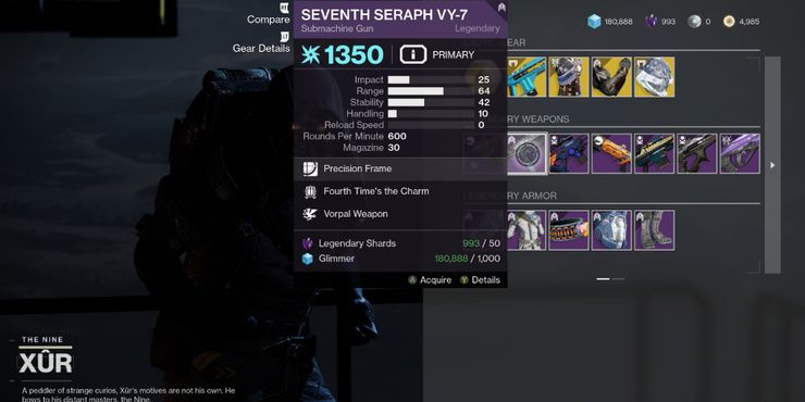 - Séptimo Serafín VY-7 (Arco SMG) – Marco de Precisión, El Encanto/Arma Vorpal de la Cuarta Vez, rol fantástico para PvE y PvP que también puede crear Warmind Cells.