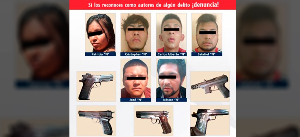 Los sujetos fueron identificados como Patricia “N”, Cristhopher “N”, Carlos Alberto “N”, Salatiel “N”, José “N”, Néstor “N”, Eduardo “N” y un menor de edad, a quienes les decomisaron armas de grueso calibre.