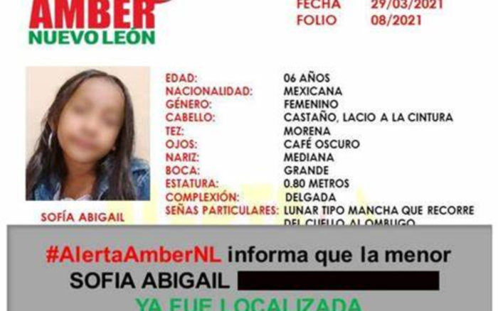 “Muchas gracias por su colaboración que llevó a la localización de Sofía Abigail. Juntos lo hicimos posible. Se levanta Alerta Amber”, tuiteó la fiscalía el mismo martes.