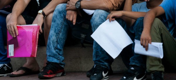 Migrantes en busca de respuestas a su situación migratoria en Chiapas afuera de la Comisión Mexicana de Ayuda a Refugiados (Comar).