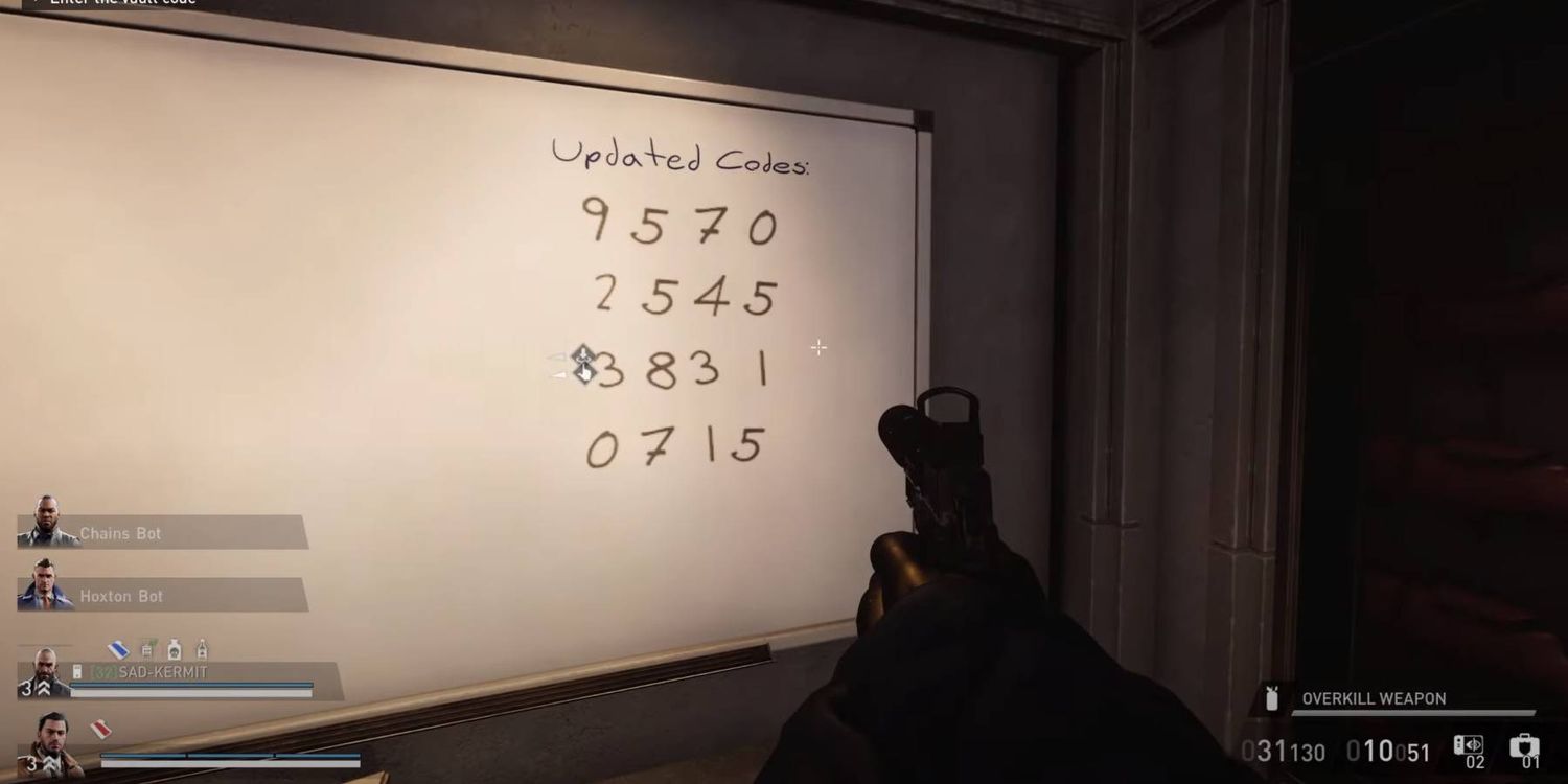 “/> La forma más sencilla de encontrar el código Vault es usar una linterna ultravioleta a ver qué cuatro números fueron presionados. Esto te dará una asombrosa 24 combinaciones diferentes para que usted o cualquier compañero de equipo encuentren la secuencia correcta. En dificultades menoresningún guardia entra en este espaciosiendo la Guardia Especial en Overkill la única excepción, lo que te da suficiente tiempo para probar todas las secuencias posibles hasta que se desbloquee la Bóveda en Día de pago 3.
