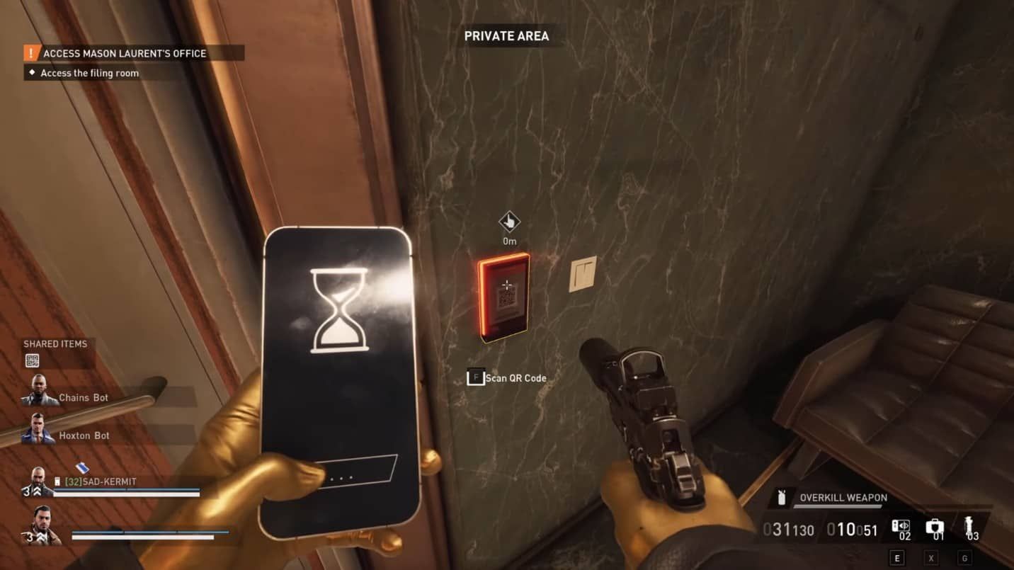 El Tarjeta roja se puede encontrar en el pasillo sur del primer piso en el edificio principal de este atraco, pero la puerta del artículo requiere una Código QR abrir. Hackea el teléfono de un guardia encubierto en el ático para obtener el código.