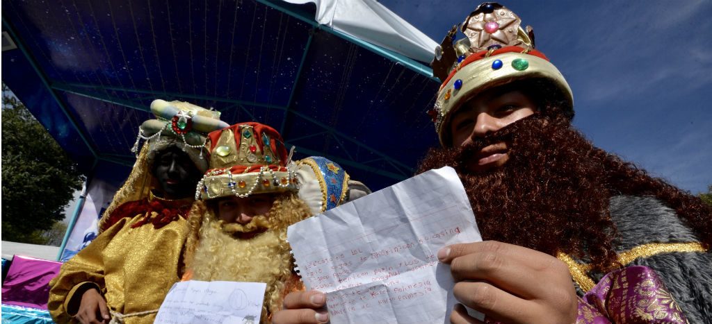 Dicha historia dio origen a la costumbre de ofrecer y recibir regalos, principalmente para los niños, quienes piden a los Reyes Magos los obsequios que desean mediante una carta, que suelen enviar por medio de un globo con helio o que entregan en alguna de las instalaciones que se colocan en plazas públicas y centros comerciales, donde Melchor, Gaspar y Baltasar no solo escuchan las peticiones de los pequeños sino que además se toman la foto con ellos.