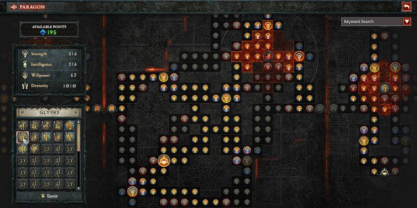Piel espinosael segundo tablero, utiliza el aumento de daño de Thorns de los tiempos de reutilización, con el Explotar glifo aumentando aún más el daño contra enemigos vulnerables. Estos son muy importantes para el daño general de su construcción. Diablo 4: Recipiente del odio.
