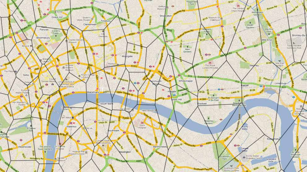 Según muchos especialistas, sí que habrían que descubrir las matemáticas, puesto que se esconden bajo conceptos como la proximidad o la pertenencia, como es el caso del diagrama que aquí nos ocupa, y que se lo debemos a un matemático ruso llamado Georgy Voronoi.