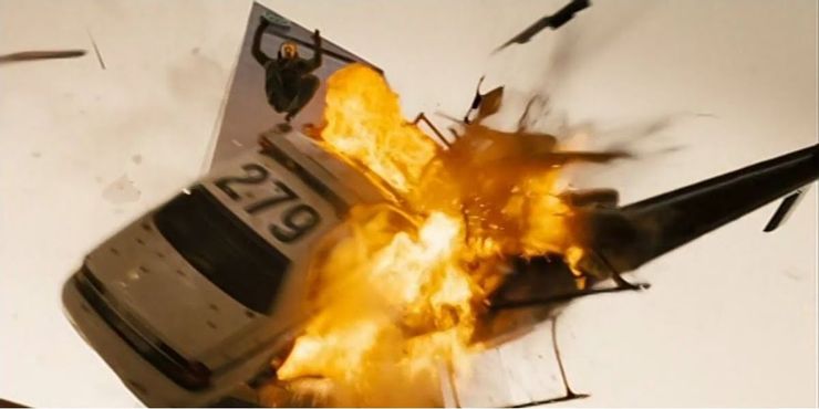 Después de ser acorralado por un helicóptero en Vive libre o muere duro, McClane toma medidas drásticas y usa un coche de policía para subir al helicóptero armado, llevándolo al reino. En una escena bastante rudo, y el uso de un automóvil como arma se destaca en las películas de acción.