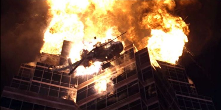 Sin opciones, John envuelve una manguera contra incendios a su alrededor y salta del edificio justo cuando Gruber vuela el techo, derribando al FBI, lo que resulta en una explosión verdaderamente ardiente y épica. Desde ese día, la escena de la explosión de la azotea se ha convertido en una escena icónica de acción y espectáculo, y es una de las mejores escenas de lucha de la carrera de Bruce Willis.