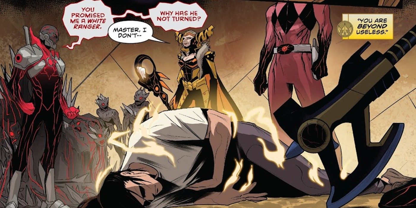 Durante su primer encuentro, Lord Drakkon le dice a Tommy en Mighty Morphin Power Rangers #16 que Tommy nunca valdrá la pena “Cuando ni siquiera puedes vencerme”. Tommy demostraría su valía venciéndolo a tiempo, pero primero, Drakkon lo mata para iniciar el arco de “Shattered Grid”. Sin embargo, la líder de la resistencia de Coinless World y ex Ranger Slayer, Kimberly Hart, inicia un plan de seguridad único en el que retrocede en el tiempo antes de que Rita Repulsa reclutara a Tommy. Ella dispara una flecha no fatal a su corazón, pero los lectores no entenderán lo que sucede allí hasta que Cuadrícula destrozada #1.