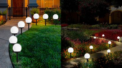 Si además de iluminar, quieres darle un toque decorativo a los caminos de tu patio o jardín, este juego de ocho luces LED es el ideal. Su llamativo diseño en forma de bola llama fácilmente la atención y ofrecen hasta ocho horas de iluminación autónoma, ya que se recargan durante el día con la luz del sol. Son resistentes al viento y el clima, y se instalan fácilmente en el césped o la tierra gracias a su estaca inferior.