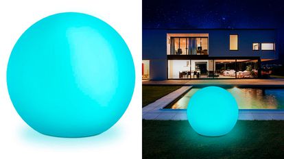 Para iluminar una área específica del jardín a nivel del suelo, esta bola LED puede ser de gran ayuda. Además, te permite elegir entre ocho diferentes colores de luz (rojo, verde, azul, amarillo, morado, turquesa, rosa y blanco) para utilizarla como elemento decorativo o crear diferentes atmósferas. Se recarga automáticamente con la luz del sol y su batería proporciona hasta ocho horas de funcionamiento durante la noche. Es resistente a la lluvia y la nieve.
