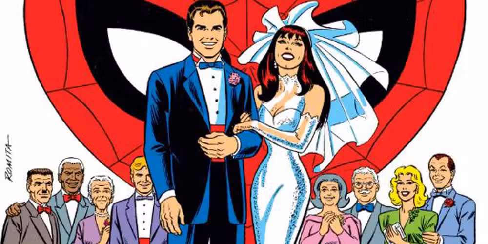 El matrimonio de Spider-Man con Mary Jane en 1987 fue el último paso en la madurez personal de Peter Parker.. Mostraba cómo había pasado de ser un adolescente con superpoderes a un adulto que había aprendido a ejercer dicho poder con responsabilidad.