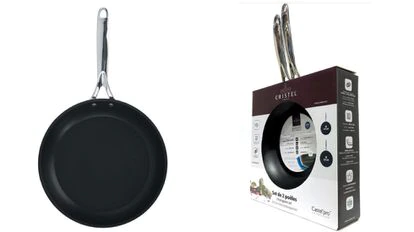 Aunque Cristel también fabrica sartenes antiadherentes de calidad. Como el pack de la imagen: de 24 y 28 centímetros de diámetro. Los tamaños más usados en la cocina. Tienen un antiadherente resistente y los mangos remachados, incorporando un pequeño ángulo en la unión de la sartén para evitar posibles quemaduras. Se debe cocinar con ellas a temperaturas medias o bajas. Son aptas para todo tipo de cocinas.