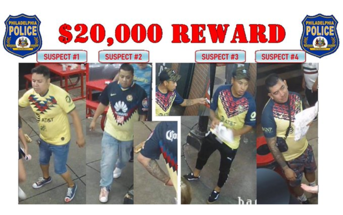 La policía de Filadelfia difundió un video y ofreció 20 mil dólares de recompensa para encontrar a los individuos, con playeras del América, que propinaron una fatal golpiza a un hombre y, dejaron malheridas a otras dos personas, en el restaurante Pat’s King of Steaks, luego del encuentro frente al Philadelphia Union correspondiente a las Semifinales de la Concachampions el pasado jueves.