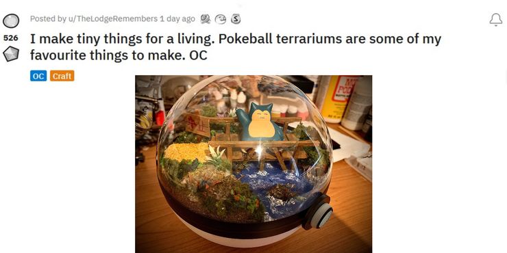 Los terrarios creados y compartidos en Reddit por TheLodgeRemembers son esculturas integradas en grandes cajas de Poké Ball con tapas transparentes. A través del plástico transparente, es fácil ver que los interiores están personalizados para el Pokémon individual que reside dentro de cada uno. Un terrario presenta un Mega Charizard Y, posado con orgullo en un trozo de tierra quemada. Otro coloca un Snorlax en medio de un puente de madera, un obstáculo demasiado familiar para un entrenador ambulante. Escenas como estas pueden resultar familiares para algunos lectores, ya que no es la primera vez que pokémon-los terrarios temáticos han causado sensación; un artista ha creado y vendido esculturas similares a partir de viejas consolas de Nintendo. TheLodgeRemembers también vende sus terrarios a través de su tienda de Etsy, SpiritInkBear, aunque debe tenerse en cuenta que cada terrario es aparentemente único.