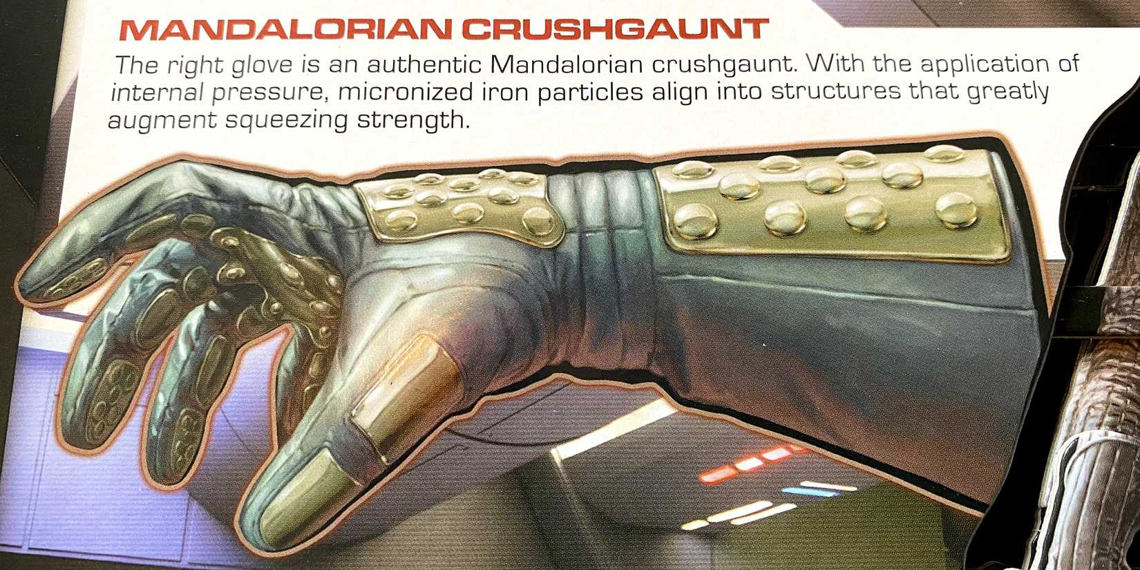 Según la sección “Guantes/botas” de Darth Vader: un registro de reconstrucción tridimensional, La mano derecha mecánica de Vader es “Un auténtico critoso mandaloriano”. La estructura interna le da a Vader una increíble fuerza de apretón, lo que sería invaluable para aferrarse a algo en una situación peligrosa o incluso ahogar la vida de un enemigo. Los mandalorianos pueden haber desarrollado esto para contrarrestar las habilidades de la fuerza Jedi, una herramienta útil después de que la conexión de Vader con la fuerza disminuyó al perder las extremidades.