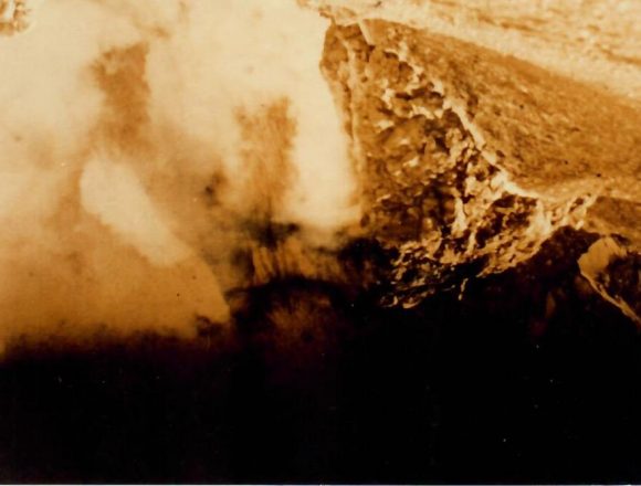 “Yo estaba parado junto a uno de los humeros, cuando de repente oí un tronidazo y sentí que las paredes del cráter y el suelo se movían como en un temblor. Las paredes tronaban como si hubieran sido de madera. Corrí a buscar refugio, y yo y todos mis compañeros, que éramos 18, nos pusimos debajo de unas peñas. De donde pusieron los cuetes salieron chorros de piedras que subieron muy alto en el aire, se desparramaron y cayeron por todos lados. Lo que a mi me dio más miedo fue ver cómo temblaron las paredes, y los chorros de piedras que caían de todas ellas.