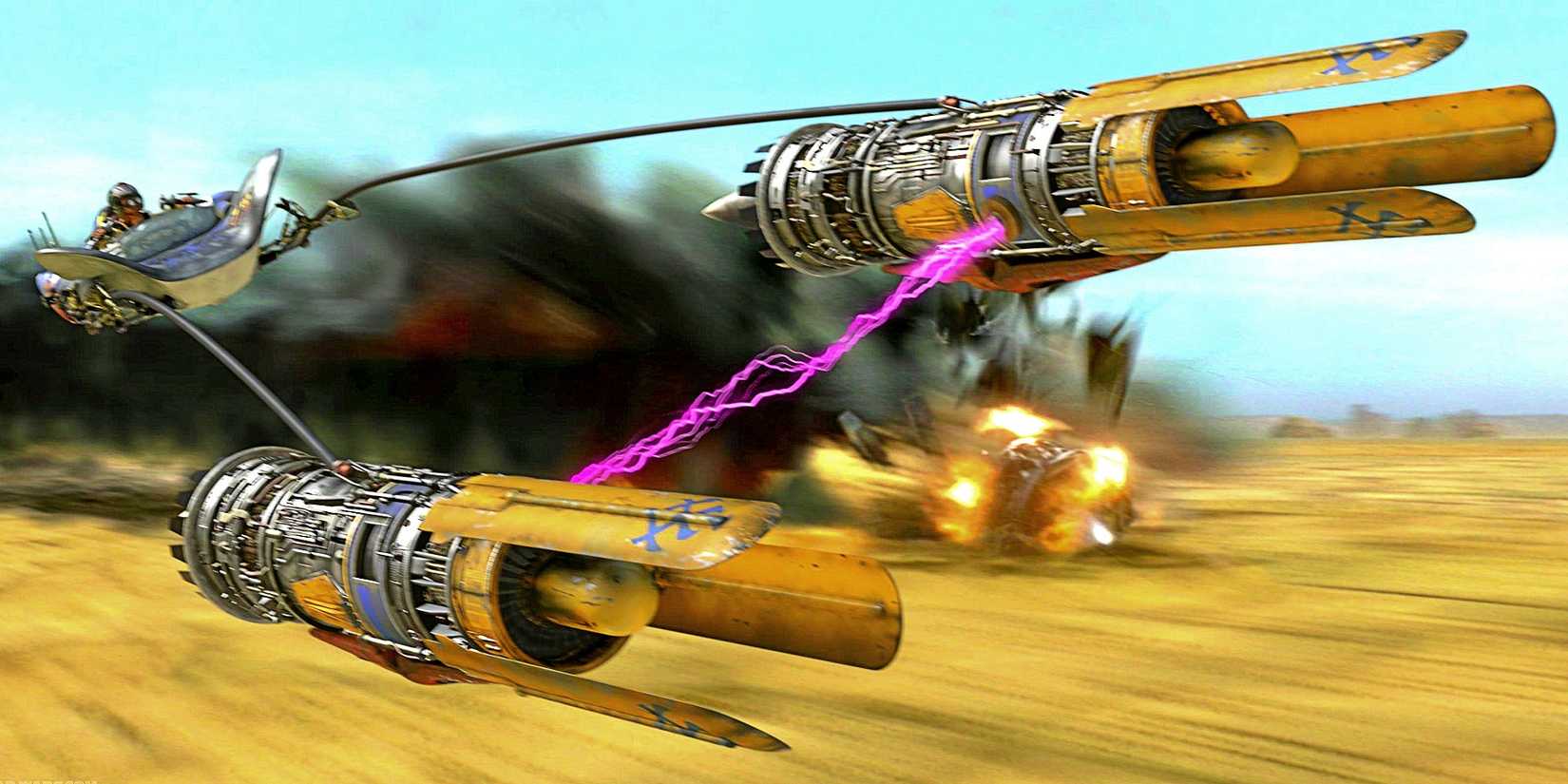 Esto incluye a Anakin Skywalker como Jedi Padawan que ataca a Tusken Raider Village en Ataque de los clonesAurra cantando viendo la carrera como en La amenaza fantasma, Jawas recogiendo R2-D2 de Una nueva esperanzae incluso Qui-Gon y Darth Maul se involucran en su primer duelo de sable de luz.