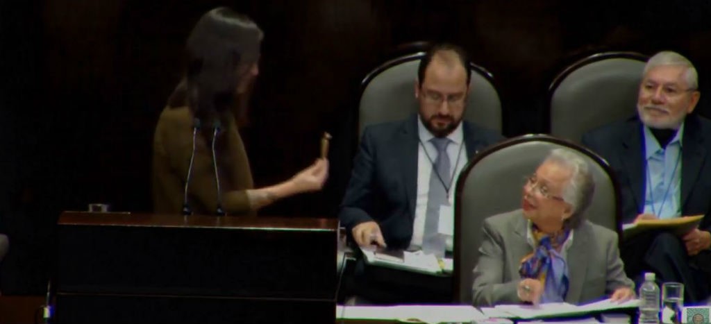 Durante la comparecencia de la secretaria de Gobernación, Olga Sánchez Cordero, en la Cámara de Diputados, la legisladora sin partido Ana Lucía Riojas Martínez le regaló un churro de mariguana para recordarle la propuesta que hizo al inicio del sexenio para legalizar el consumo de las drogas. “La escuché festejar que la creación de la Guardia Nacional se aprobó en ambas cámaras por unanimidad. Yo voté en contra porque pienso, por lo que la evidencia ha arrojado, que no es el camino para construir la paz, sino todo lo contrario, nos traerá más violencia. Un paso para construir la paz es legalizar el consumo de las drogas, propuesta que usted misma hizo. Así que, nada más para cerrar esta intervención en esta comparecencia, le traigo un regalo como recordatorio de aquella propuesta que usted hizo al principio”, expresó.