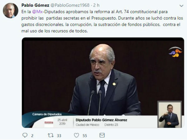 Al fundamentar el dictamen, en tribuna, el diputado Gómez Álvarez señaló que durante largos años, estas partidas no fueron utilizadas por los secretarios de Estado, “las usaba directamente el Presidente de la República sin ningún acuerdo escrito de él mismo. Las entregaba a quien quería, cuando quería y para lo que quería”.
