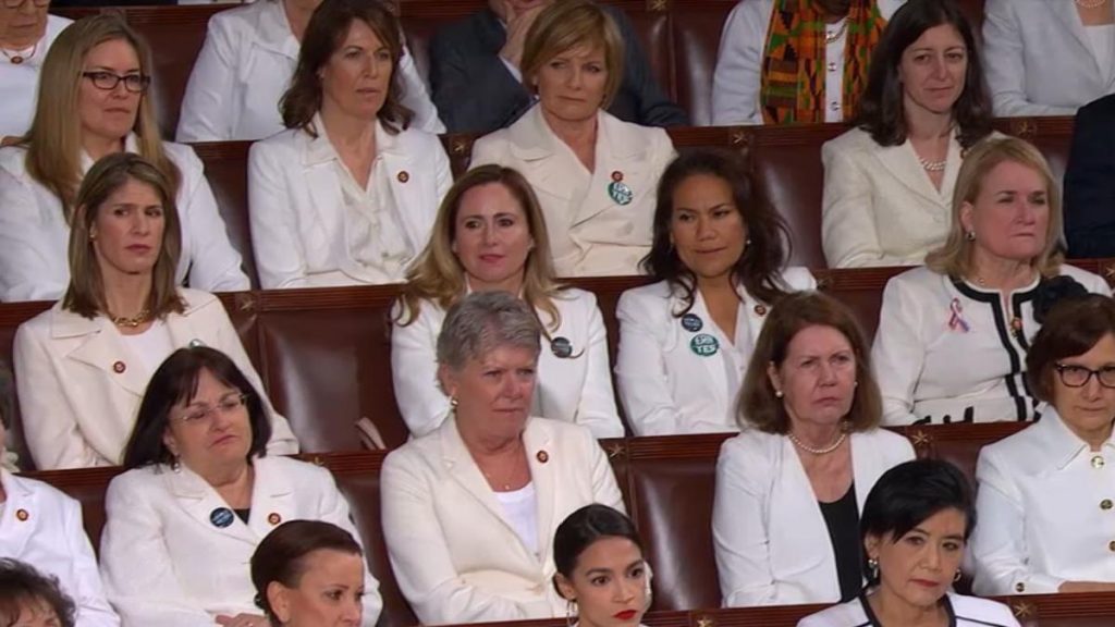 En 2017, el Grupo de Trabajo de Mujeres Demócratas de la Cámara de Representantes realizó una acción similar al unificar su vestimenta blanca durante un discurso presidencial en el Congreso, para impulsar la agenda acerca del poder de las mujeres en la nación.
