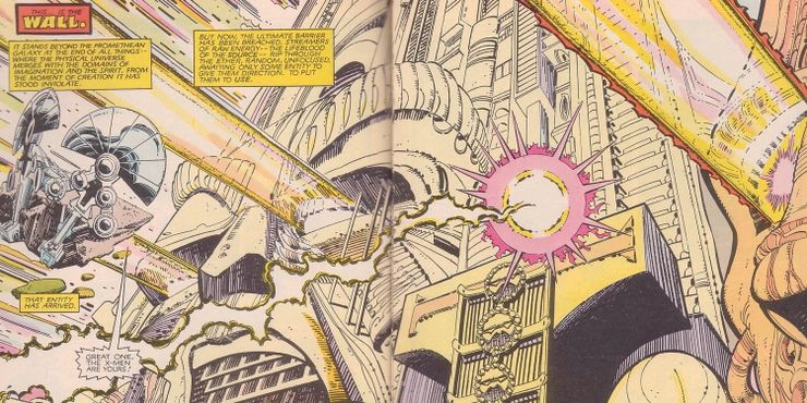 Cuando Diggle abrió la caja por segunda vez, Thawne le ordenó que sintiera el poder del cubo y “romper el Muro de la Fuentemientras contemplaba todos los mundos que le esperaban. El Muro de la Fuente es una parte clave de la mitología de los Nuevos Dioses de DC Comics, siendo el límite entre el Multiverso y la energía que creó todo lo que existe, que los Nuevos Dioses llaman la Fuente. El Muro de la Fuente está decorado con los cuerpos petrificados de los legendarios Gigantes de Prometeo, junto con otros innumerables dioses muertos, entidades cósmicas y otras criaturas tontas que intentaron pasar por alto el Muro de la Fuente y reclamar el poder de la Fuente para sí mismos.