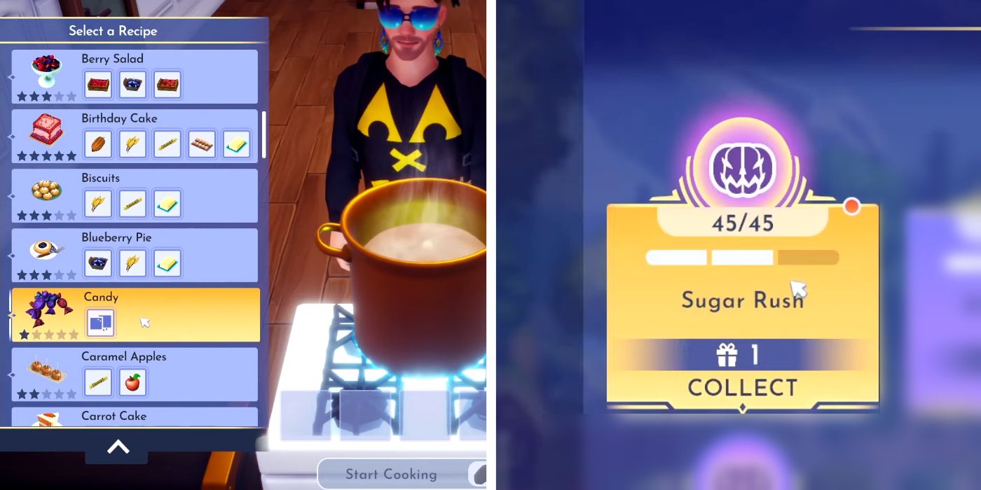 Al igual que en la vida real, la “subidón de azúcar” es un estallido repentino de energía después de consumir alimentos que contienen mucha azúcar. Para la tarea “Sugar Rush”, debes hacer exactamente lo mismo: consumir muchos alimentos azucarados. Esto significa que tu personaje debe comer dulces para completar este deber. Hacer dulces en Disney Dreamlight Valley es bastante sencillo ya que es un Receta de 1 estrella y requiere algunos ingredientes obvios para completarse.