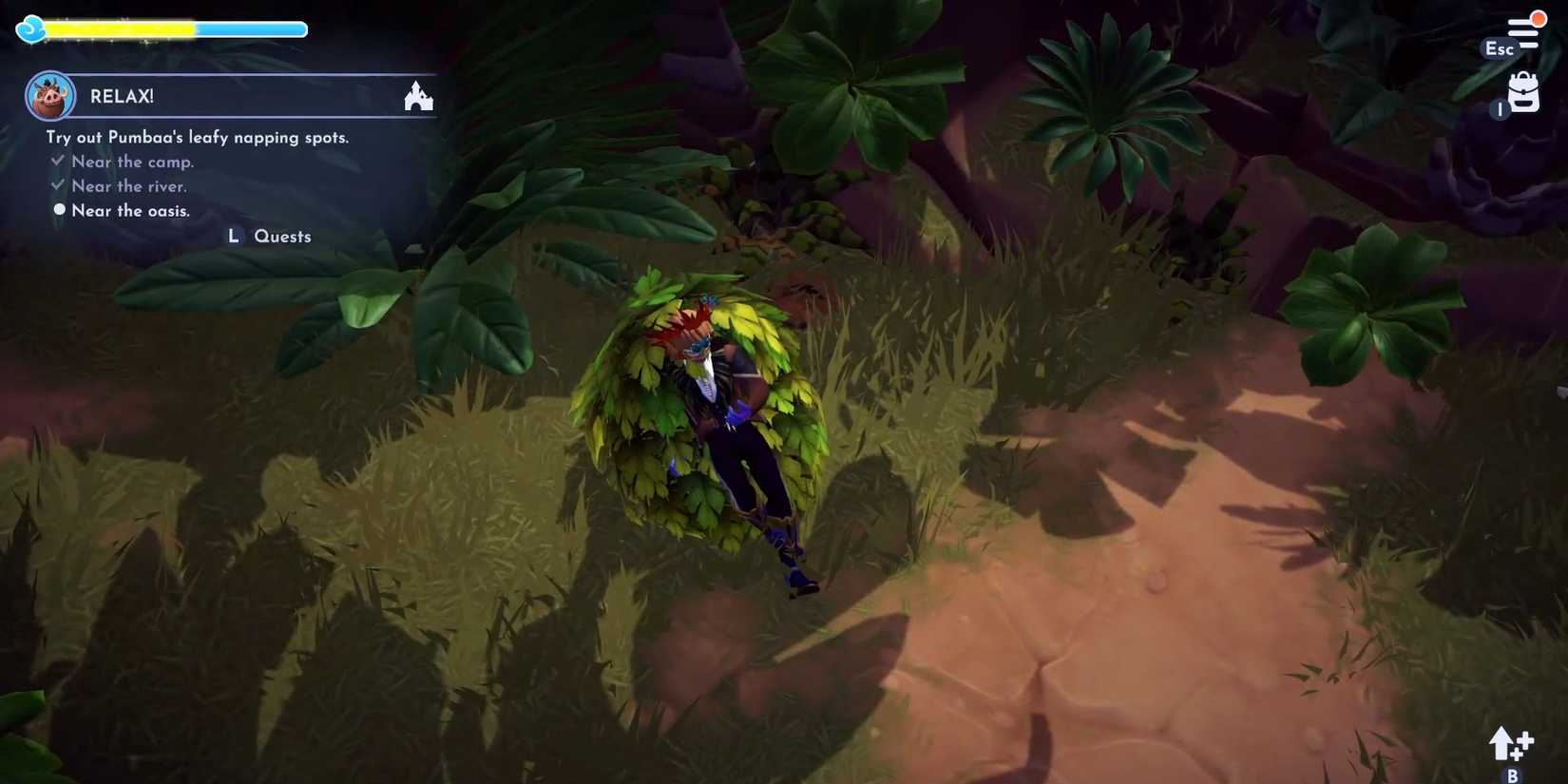 Después de sentarte en la hamaca hecha a mano, debes prueba los lugares favoritos para dormir la siesta de Pumba. Los encontrarás buscando montones de hojas gigantes y interactuando con ellos para probarlos.