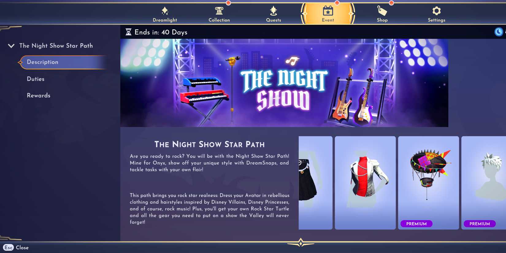 Las recompensas por Night Show Star Path son casi todos con temas de estrellas de rock. Esto se puede ver en los pantalones Rock Star y el disfraz Shank, que encabezan el nivel final de recompensas. Los muebles y la ropa constituyen la totalidad de las recompensas de este, más allá de la recompensa ocasional de Piedra lunar. Es un tema divertido que llenará tu guardarropa y tu isla con artículos listos para un gran concierto de rock en Valle de la Luz de los Sueños de Disney.