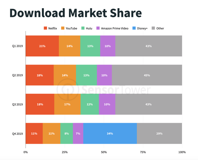 Además, los 30 millones de instalaciones de Disney + en EE. UU. Fueron más de lo que Hulu y Amazon Prime Video tuvieron en todo 2019.