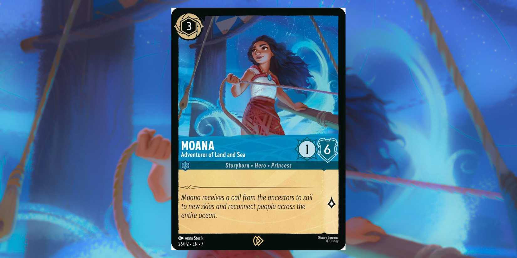 Por el momento, sólo hay una tarjeta confirmada para Isla de Arcazia. Moana, Aventurera de Tierra y Mar se entregó originalmente como una tarjeta promocional junto con el lanzamiento de moana 2. La tarjeta tiene el número establecido para Isla de Arcazia en la parte inferior, por lo que probablemente aparecerá en el conjunto de alguna forma, aunque probablemente tendrá un arte diferente al de la versión promocional. La tarjeta en sí no es muy emocionante.solo un personaje con mucha fuerza de voluntad sin ningún efecto que busca una historia. Esto realmente no da muchas indicaciones de qué esperar del set.