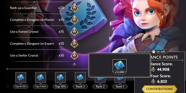 Se puede unir o crear una Alianza yendo a la página de inicio y seleccionando el botón Alianza en la parte inferior de la pantalla. Crear una alianza es gratis, o los jugadores pueden unirse a una existente que aún no haya alcanzado los 20 miembros. La actividad de la alianza también se puede ver antes de unirse para ver qué tan activo es el grupo. Cada vez que los jugadores comienzan a completar actividades en espejo de disney, como desbloquear nuevos Guardianes, deben verificar las misiones de la Alianza disponibles para asegurarse de que puedan alcanzar hitos rápidamente. Sin embargo, casi todas las actividades otorgan puntos, por lo que los jugadores también pueden ganar laureles de forma pasiva con solo jugar.