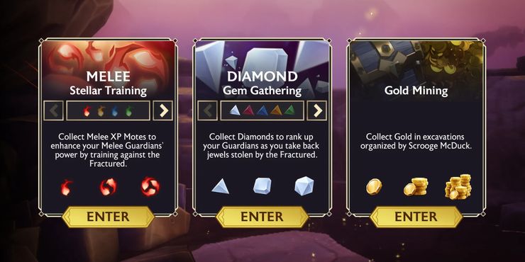 El modo historia en espejo de disney actualmente consta de siete capítulos, pero todavía hay muchas actividades para hacer después de terminar el juego. Junto con mayores dificultades para cada encuentro de la historia, también hay otros modos de juego con misiones más desafiantes. Continuar completando actividades después de completar la historia en el modo Normal permitirá a los jugadores obtener recompensas más sustanciales y aumentar el nivel de poder de cada Guardián.