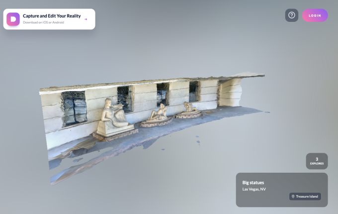 La primera aplicación lanzada públicamente de la compañía, Display.land, comenzó a implementarse en iOS y Android durante el fin de semana. Parte del escáner 3D y parte de la red social, le permite escanear una ubicación u objeto, editarlo (recortarlo solo en los bits que le interesan o agregar objetos digitales preconstruidos) y compartirlo con el mundo. ¿Quieres que todos lo vean? Puede anclar un escaneo a un mapa, lo que permite a cualquier persona explorar explorar su escaneo. ¿Quieres que te lo guardes? Gire la palanca de privacidad en consecuencia.