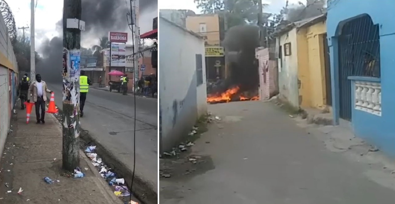 Las fuerzas del orden reportan disturbios en los sectores de Mendoza, Villa Carmen, en Santo Domingo Este; los Guaricanos, Santo Domingo Norte, Villas Agrícolas y en Santiago, en el municipio de Navarrete.