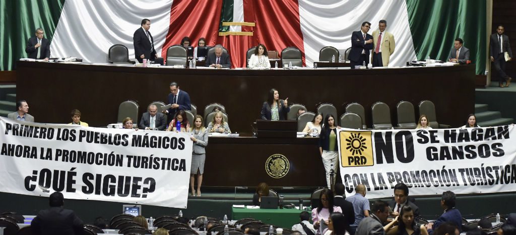 Entre pancartas con la leyenda “¡No se hagan gansos con la promoción turística!“, exhibidas por perredistas, la oposición criticó al gobierno federal por desmantelar instituciones que han servido y que ayudaron a que México se haya colocado en el sexto destino del mundo, generando empleos y divisas.