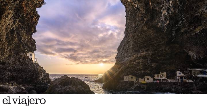 El sabor popular y el fuerte oleaje se hacen eco en las casitas de pescadores —hoy de veraneantes— empotradas dentro de una descomunal cavidad al nivel del mar, casi como si de una estampa navideña se tratase. A través del proís se subían las mercancías cargadas en mulos hasta el pueblo de Tijarafe. El Kiosco El Diablo (calle de la Molina, 1), de tapitas y parada obligada al atardecer, señala el descenso de cinco kilómetros por una carretera endiablada (nunca mejor dicho): angosta, empinada y de curvas cerradísimas. Un kilómetro antes de llegar al final de este culebreo se abre un pequeño aparcamiento para los senderistas que deseen bañarse en la playa del Jorado. Tras un corto camino empedrado, con cuerdas a modo de balaustrada, ya estaremos entre las viviendas que combinan el blanco con pinceladas de ocre y azul turquesa. Desde el salón —así llaman al varadero—, la boca de la cueva perfila mágicamente la silueta de la isla de La Palma. Los hay quienes confunden la imagen de la Virgen del Carmen con la de la Candelaria.