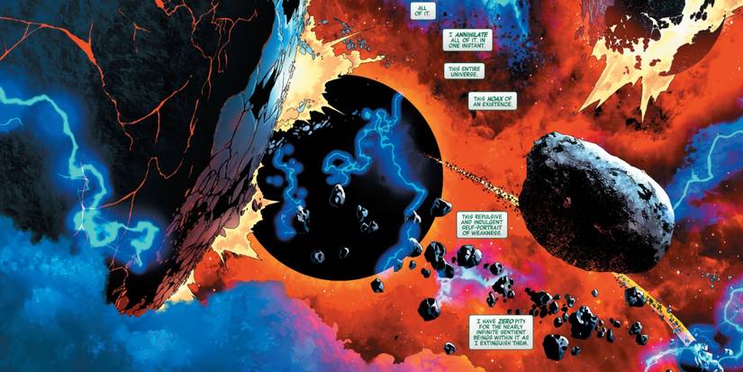 El Doom de este nuevo universo se ha hecho amigo de su Richards, y el colmo para 616 Doom es cuando el alt-Doom insulta su guardarropa. Doom hace lo único racional que se le ocurre hacer: mata a su contraparte y a todo su universo. Petty sería quedarse corto en este caso, pero más que nada, la destrucción es un indicador de que Doom es incapaz de lograr un cambio positivo significativo, por mucho que lo desee.. Es agridulce. Es una pequeña diva hasta la médula que simplemente no puede evitarlo.