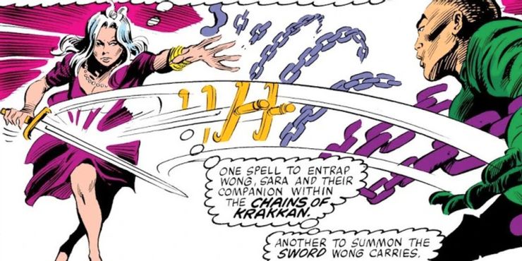 Los fanáticos de los cómics saben que Clea está junto a Strange como un poderoso hechicero. Clea usa Las Cadenas de Krakkan para atar a sus oponentes en cadenas místicas en doctor extraño # 45, un hechizo humano que restringe a las personas poseídas sin dañarlas.