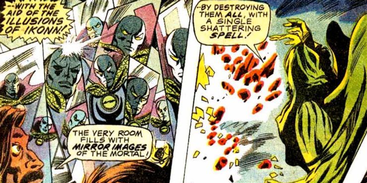 Este uso de imágenes especulares se repite en Marvel Comics y en el MCU. Strange confía en un hechizo similar a las Imágenes de Ikonn contra la Bruja Escarlata cuando se infiltra en Kamar-Taj en Doctor extraño en el multiverso de la locuraralentizando momentáneamente su progreso.