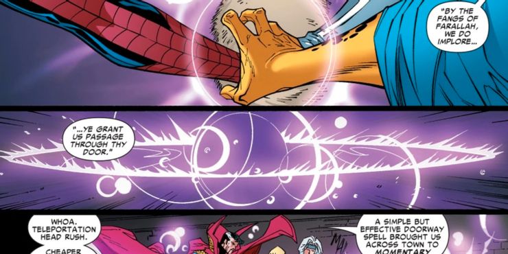 El Pentagrama de Farallah requiere que cinco personas trabajen juntas para teletransportar a las personas a distancias increíbles, lo que lo convierte en un gran hechizo de Marvel Comics. Doctor Strange trabajó con Spider-Man y Silver Sable para usar el hechizo en Spiderman vengador #8.
