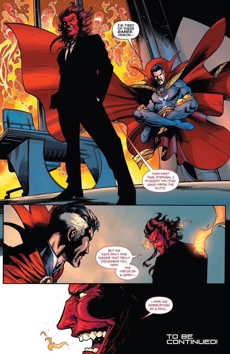 A medida que su conversación ha progresado en el transcurso de múltiples problemas, el Doctor Strange exige el fin de los juegos del señor de los demonios, ya que se cansó de las palabras crípticas y las alusiones al trato que se hizo con Peter Parker. Ahora, Amazing Spider-Man # 73 de Nick Spencer, Zé Carlos, Carlos Gómez y Marcelo Ferreira ve a Mephisto preparado para hacer un nuevo trato con el propio Doctor Strange, y podría salvar a Spider-Man del agente demoníaco de Mephisto, Kindred, que ha estado atormentando al Webslinger, buscando castigar a Spider- Hombre por el trato que hizo y que ni siquiera puede recordar. Sin embargo, es posible que este nuevo acuerdo para salvar el alma de Spider-Man sea lo que lleve a la propia desaparición del Hechicero Supremo.