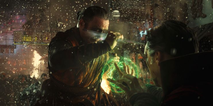 Strange decide usar Time Stone para reparar el Sanctum y revertir lo que Kaecilius ha hecho, lo que lo lleva a él y a Strange a tener su confrontación final y total, y la película no decepciona. Con el tiempo retrocediendo y reparando una calle devastada de Hong Kong, el medio ambiente se convierte en un arma y la flexión de la materia de Kaecilius se vuelve contra él.