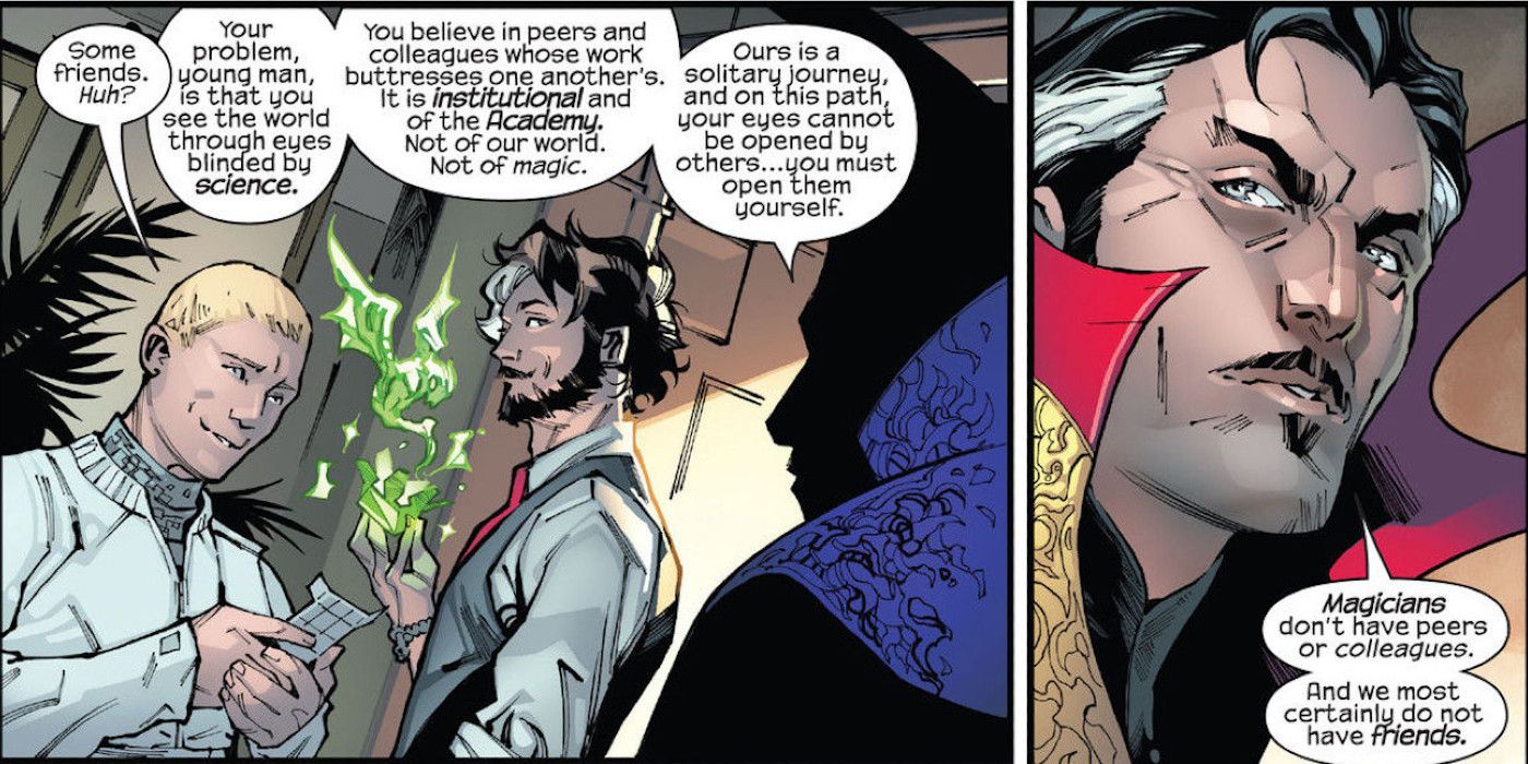 - Ser un usuario de magia en el Universo Marvel significa una vida solitaria sin compañeros ni colegas, según Doctor Strange.