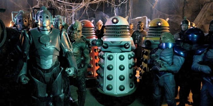 Los Daleks se han asociado con muchos de los enemigos del Doctor a lo largo de la historia del programa, incluidos el Amo y los Ogron, pero una de sus mayores alianzas se produce en “The Pandorica Opens/The Big Bang”. Esta aventura épica involucra a los mortales pimenteros uniendo fuerzas con un conjunto gigantesco de villanos que regresan, como Sycorax y Sontarans, para atrapar al Doctor en la Pandorica.