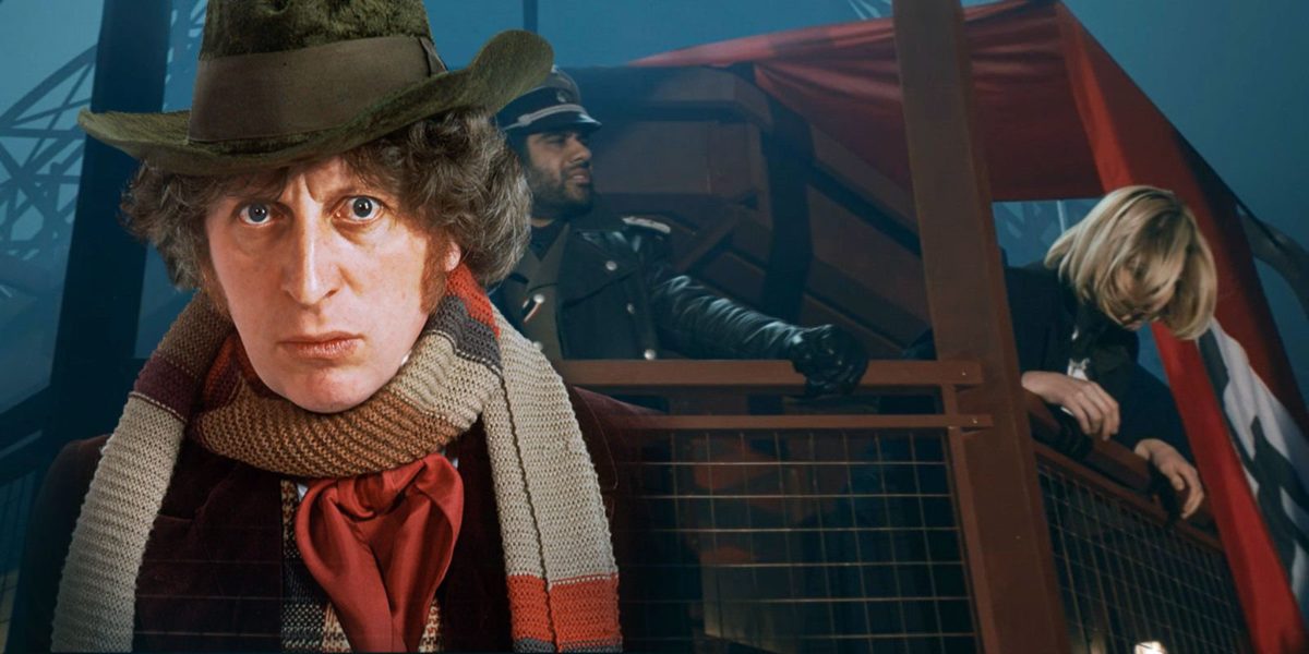 Durante esta tempestuosa conversación, el Doctor dice: "Hace frío aquí … ¡Es peor que Jodrell Bank!"El Maestro luego replica"¿Alguna vez me disculpé por eso?"Cuando el Doctor confirma que no lo hizo, el Maestro responde fríamente"Bueno."La referencia de Jodrell Bank es una devolución de llamada al clásico Médico que serie, en particular el episodio final de Tom Baker, "Logopolis". Esta aventura de 1981 ve al Maestro desencadenar accidentalmente el fin del universo, lo que requiere una alianza con el Doctor para arreglar las cosas. El dúo Time Lord usa un telescopio gigante en Inglaterra para arreglar la calamidad, pero, naturalmente, la asociación no dura más de lo necesario, y tan pronto como el universo está fuera de peligro, el Maestro amenaza con reiniciar el apocalipsis a menos que él está instalado como gobernante de todo. El Doctor se da cuenta de que puede cortar la conexión del Maestro al subirse al pórtico del plato y quitar un cable. El Doctor Baker logra hacerlo, pero el Maestro inclina el pórtico y tira al Doctor al suelo, muy por debajo, lo que provoca una regeneración del Cuarto al Quinto.