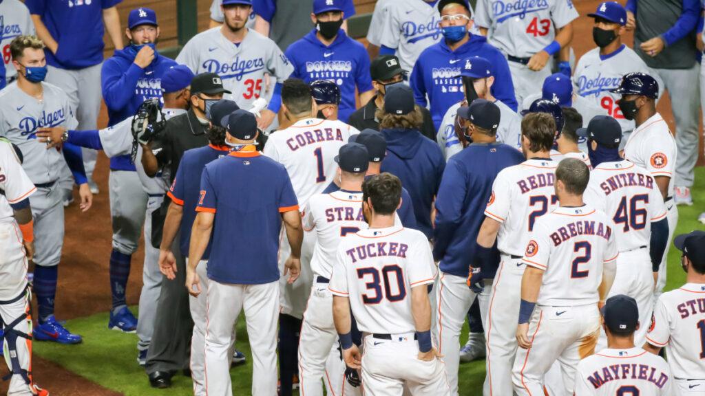 Las bancas se vaciaron el martes, durante el encuentro que los Dodgers de Los Ángeles ganaron 5-2 a los Astros de Houston.