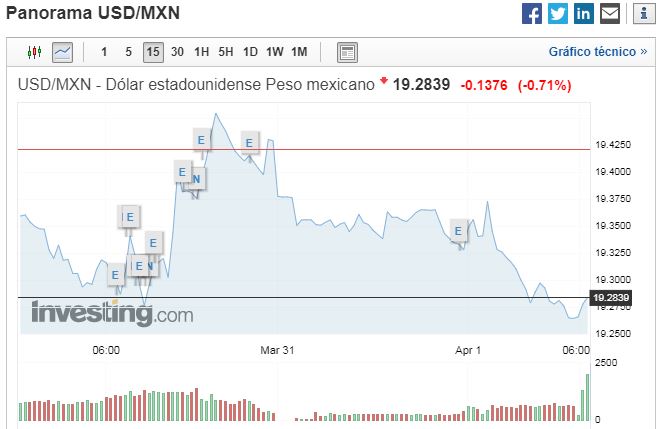 Este lunes 01 de abril, el dólar interbancario se ubica en 19.28 pesos.