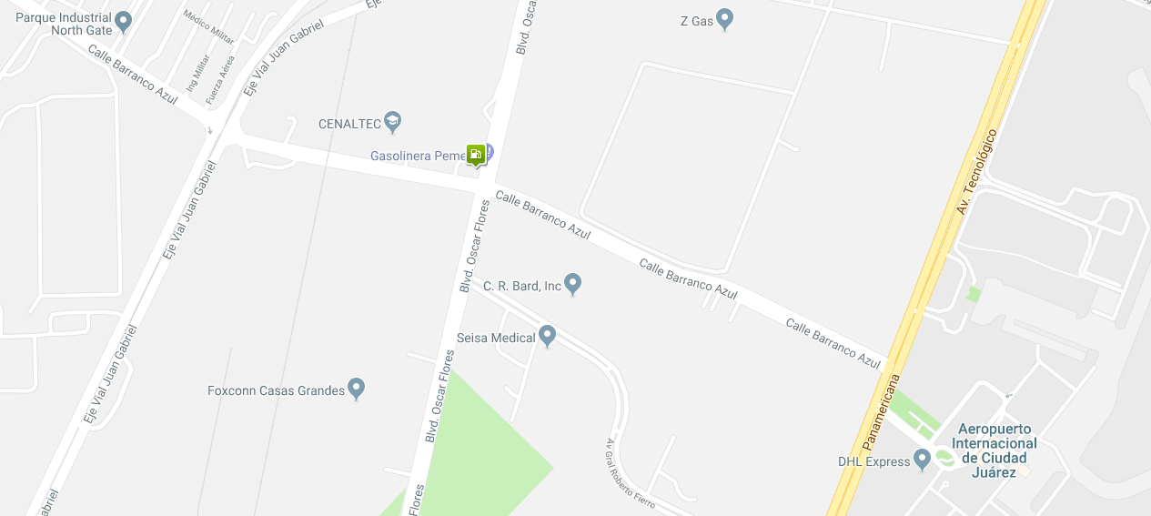 Sobre Boulevard Óscar Flores, a unas calles del Aeropuerto de Ciudad Juárez, Chihuahua, la Magna se vende en 12.99 pesos y la Premium en 14.39, de Guía Pemex.