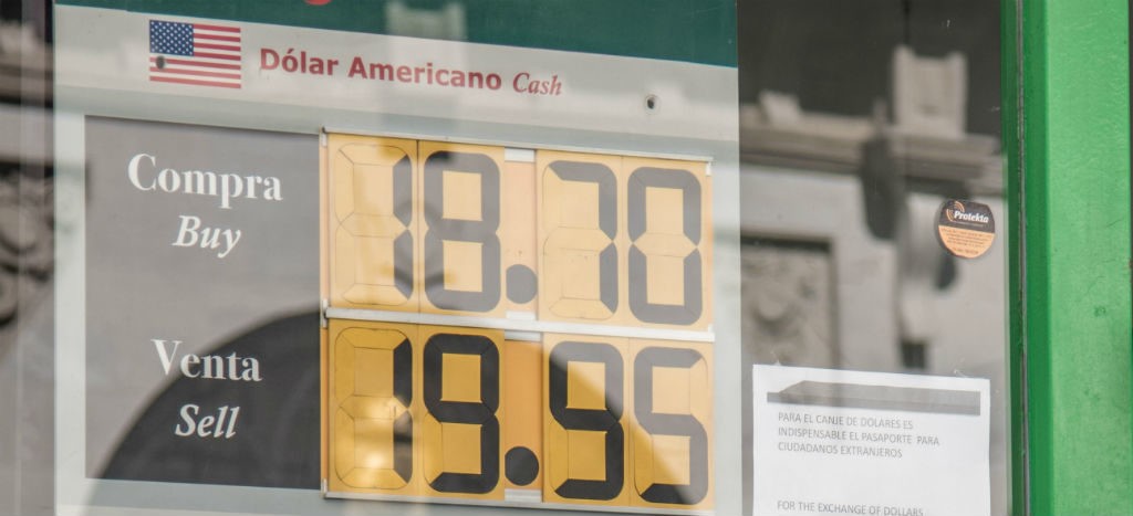 En casas de cambio ubicadas en el Aeropuerto Internacional “Benito Juárez” de la Ciudad de México, la divisa verde se negocia en un máximo de 20.15 pesos y se adquiere en un mínimo de 18.50 pesos.