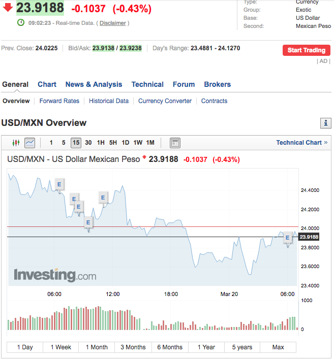 Este viernes 20 de marzo, el dólar interbancario se ubica en 23.92 pesos.